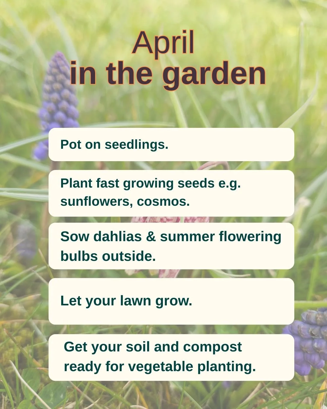 April is a busy month, the soil is warming up and the days are stretching out. It is time to get stuck into your vegetable garden and growing flowers for the summer too.