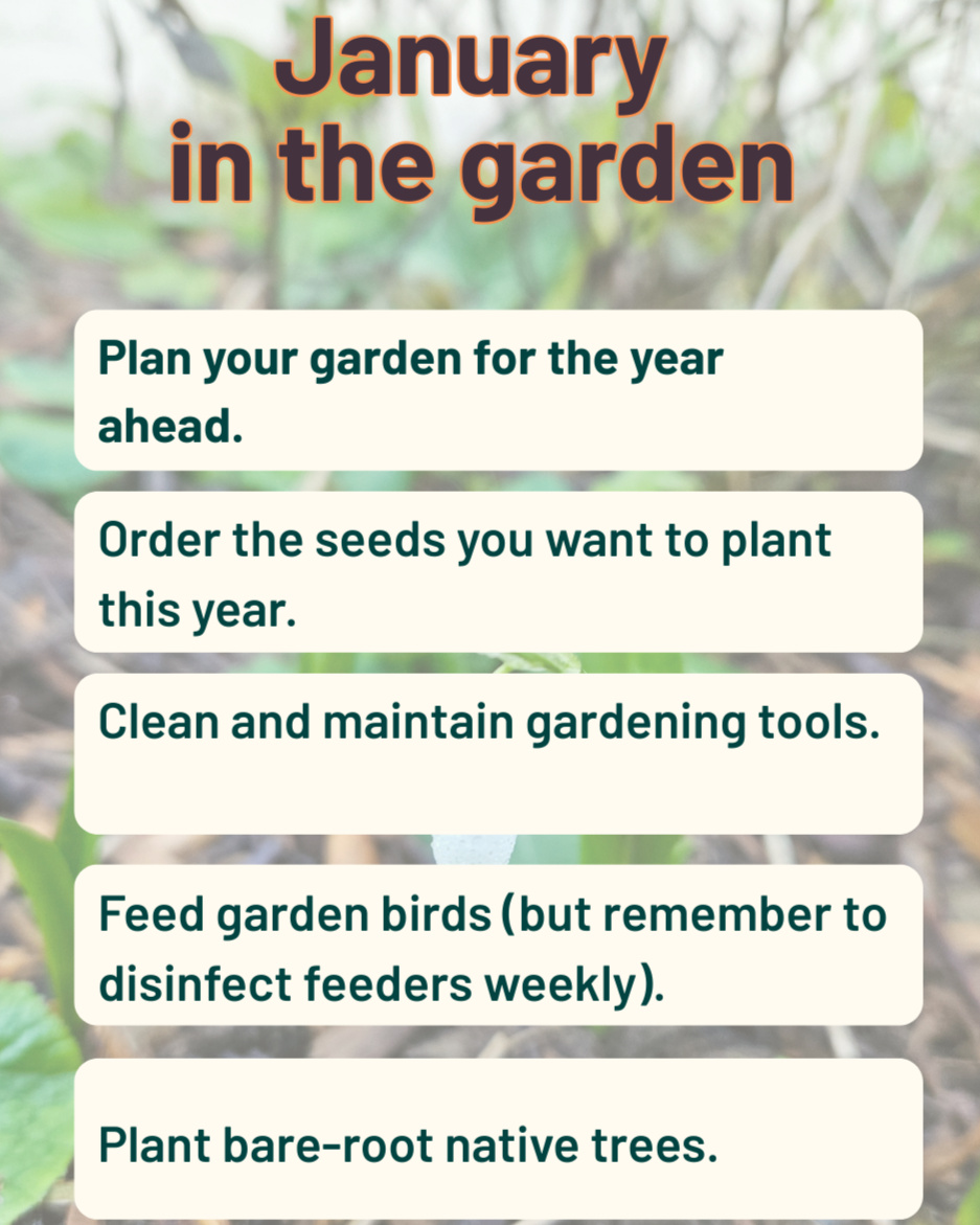 January is a month where the garden is still slumbering, the hours of light are short and the ground is often covered with a dusting of frost. However, Spring is right around the corner as the days are gradually lengthening and the snowdrops and irises are beginning to poke their heads up.