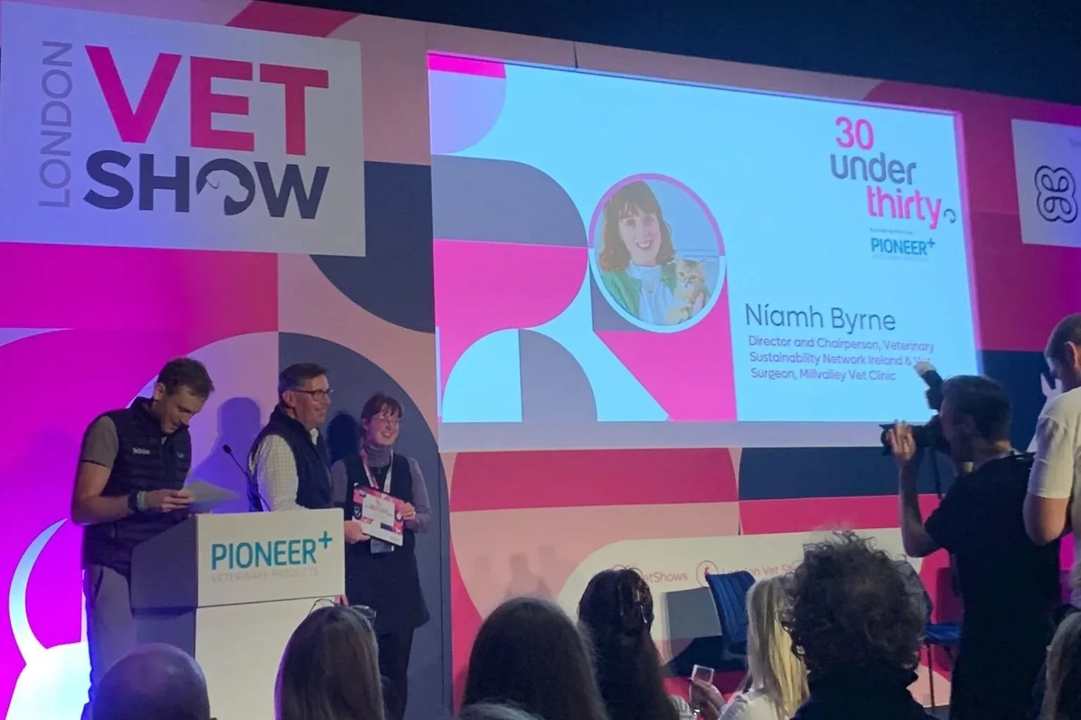 Níamh Ní Bhroin receiving the 30 Under 30 award at the London Vet Show.